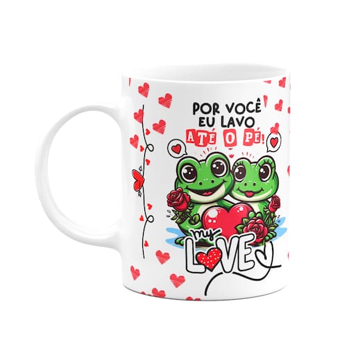 Caneca Namorados - Por você eu lavo até o pé! Sapinhos