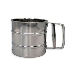 Caneca peneira polvilhadora em aço inox com seu design em formato de caneca, é perfeita para pegar ingredientes na medida certa. Indicado para peneirar açúcar, polvilho, farinha, canela, chocolate e outros alimentos em pó.Conta com uma tela em inox e um mexedor para facilitar o trabalho, bastando apenas apertar o gatilho e irá movimentar e peneirar o ingrediente.Feita de material de qualidade, garante uma boa durabilidade e resistência. especificações:material: inoxdimensões: diâmetro 16cm x altura: 10cmpeso: aprox. 130gcapacidade: 250g contém:01 caneca peneira polvilhadora em aço inox
