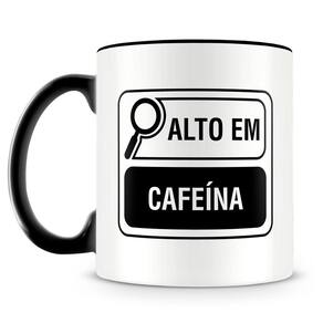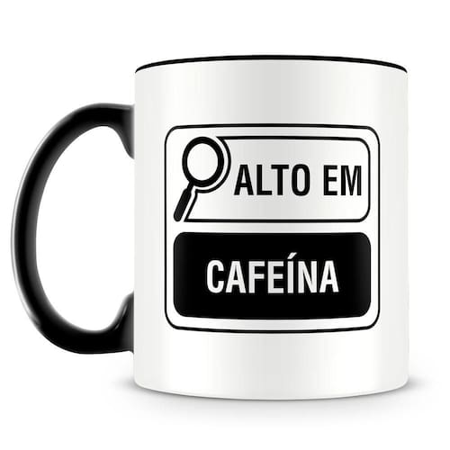 Perfeita para presentear ou para uso pessoal, a caneca "Alto em Cafeína" vai fazer parte dos seus momentos mais energizantes do dia, sempre com um toque de bom humor e praticidade.