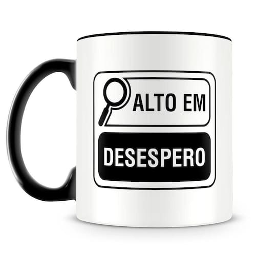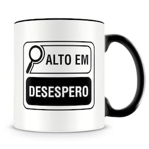 Encare os dias mais caóticos com bom humor e uma boa dose de café com esta caneca personalizada com a frase "Alto em Desespero".