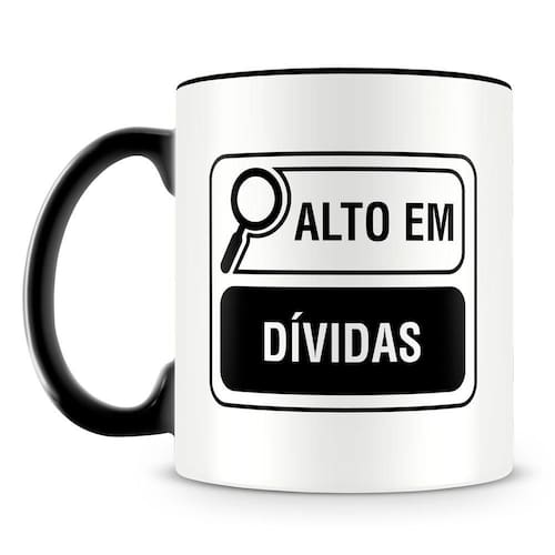 Se você ou alguém que você conhece enfrenta os desafios das finanças com bom humor, a caneca personalizada "Alto em Dívidas" é o presente perfeito para trazer um sorriso ao rosto e um toque de leveza aos momentos cotidianos.