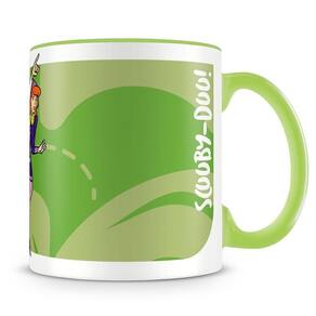 Caneca personalizada de porcelana de alto brilho interior e alça verde com linda estampa do Scooby-Doo.