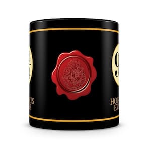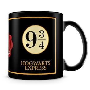 Caneca personalizada de porcelana 100% preta com linda estampa da estação Hogwarts Express..