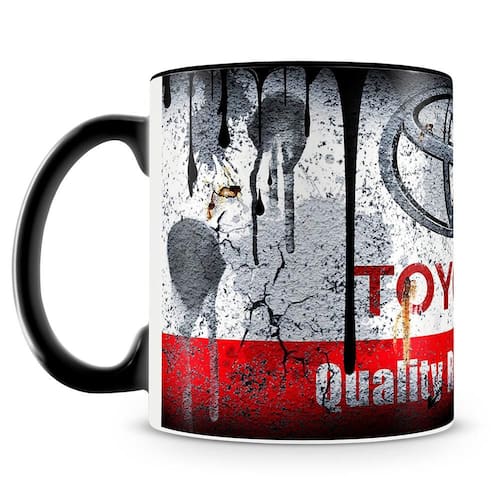 Apresentamos a Caneca com Estampa de Lata de Óleo Toyota, perfeita para os apaixonados pela marca que simboliza confiabilidade e inovação no mundo automotivo!