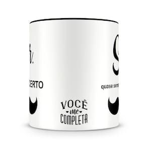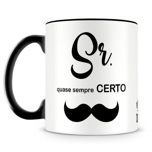 Caneca personalizada de porcelana de alto brilho interior e alça preta, com estampa Sr. Quase Sempre Certo.