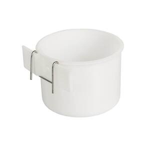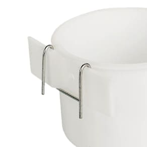 Caneca plástica com gancho em arame, prática para fixar em gaiolas e facilitar o acesso dos passarinhos à água ou alimento. Fabricada em resina plástica resistente, é fácil de limpar e durável.