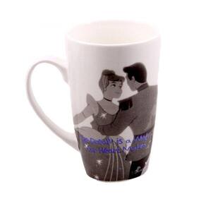 Olha que caneca mais linda que chegou na Fings Store. Com a estampa da princesa Cinderela é um presente ideal para quem adora a história . A princesa está em um lado e no outro, com seu amado príncipe em uma romântica dança, agora no estilo grafite! Muito romântica, né?