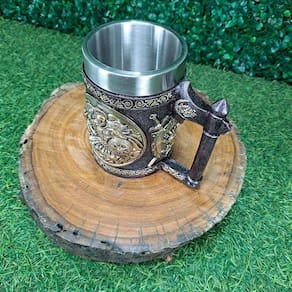 Desfrute da imponência da Caneca Gladiador. Feita com resina de alta qualidade e capacidade de 600ml, essa caneca tem um design detalhado em relevo, proporcionando um acabamento artesanal excepcional.