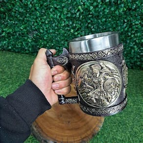 Desfrute da imponência da Caneca Gladiador. Feita com resina de alta qualidade e capacidade de 600ml, essa caneca tem um design detalhado em relevo, proporcionando um acabamento artesanal excepcional.