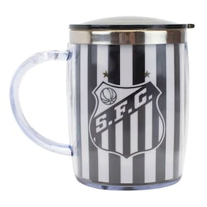 Uma caneca para a torcida Santastica assistir e torce para o Peixão ela é feita de plastico translucido com tampa e acabamento interno em inox. Uma ótima dica para presentear aquele seu amigo Santista.