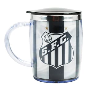 Uma caneca para a torcida Santastica assistir e torce para o Peixão ela é feita de plastico translucido com tampa e acabamento interno em inox. Uma ótima dica para presentear aquele seu amigo Santista.