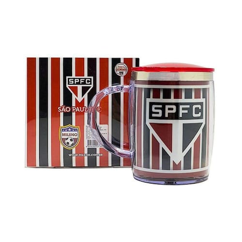 Uma caneca para nação Tricolor assistir e torce para o São Paulo ela é feita de plastico translucido com tampa e acabamento interno em inox. Uma ótima dica para presentear aquele seu amigo Tricolor.