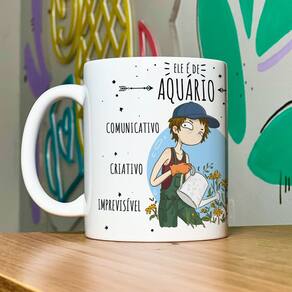 Caneca Signos Cartoon - Ele é de Aquário - 325ml