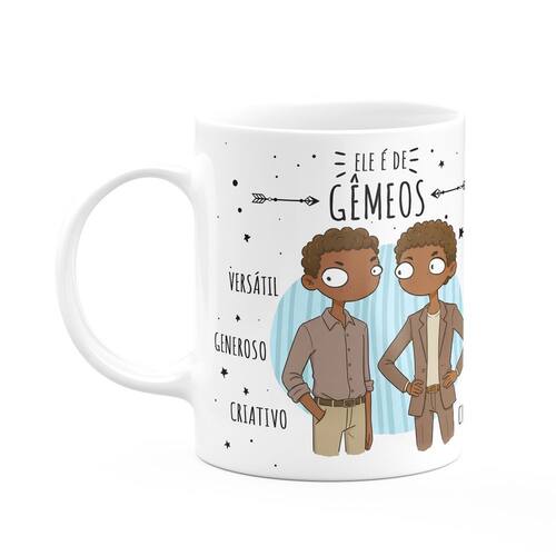 Caneca Signos Cartoon - Ele é de Gêmeos - M2 - 325ml