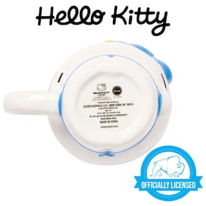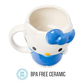 - Caneca adorável Hello Kitty: aproveite suas bebidas favoritas com esta encantadora caneca de cerâmica esculpida em 3D da Hello Kitty. Apresentando Hello Kitty em uma encantadora roupa azul de corpo inteiro, esta caneca é perfeita para fãs de todas as idades