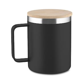Caneca Térmica 400ml Parede Dupla Com Tampa De Bambu Preta