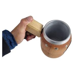 Caneca Térmica Artesanal Tipo Bárril Terra Leste 450ml Caneca artesanal Barril de madeira copo de alumínio 450 ml