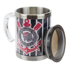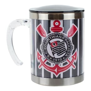 Caneca térmica com tampa e capacidade para 450 ml, estampa com as cores e brasão do Corinthians. Interior de inox e revestimento e alça de plástico Ficha técnica - Cor: Inox Medidas aproximadas do produto - Comprimento: 20 cm - Altura: 15 cm - Largura: 15 cm - Peso: 300 g