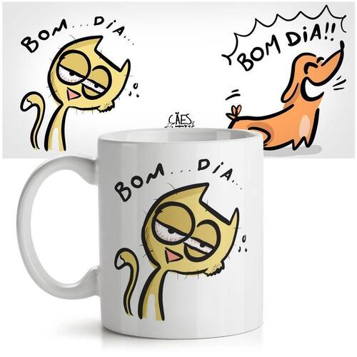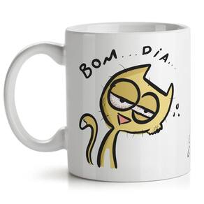 Caneca oficial do Um Sábado Qualquer, feita em cerâmica, pode ser usada no microondas.