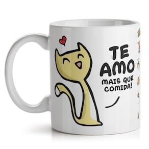 Caneca oficial do Um Sábado Qualquer, feita em cerâmica, pode ser usada no microondas.