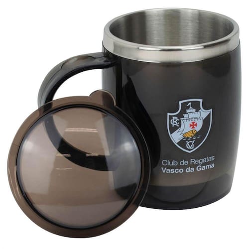 Uma caneca térmica do Vasco para assistir e torce, ela é feita de plástico translucido com tampa e borda em inox. Uma ótima dica para presentear aquele seu amigo Vascaíno.