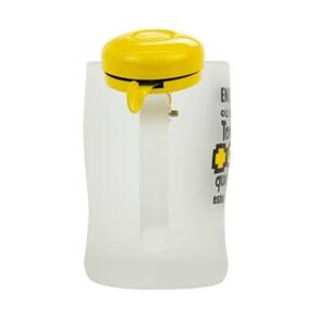 Caneca de vidro usualmente usada para tomar cerveja gelada com 400 ml. Vem gravada com a frase "Enquanto eu estiver tomando + cerveja que remédio estou no lucro" e uma campainha removível na alça. Material: vidro e metal