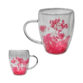 01 Caneca de Vidro Dupla Parede com Pétalas de Flores de 350ml
