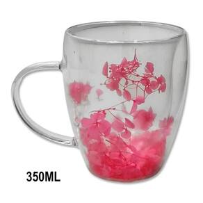 01 Caneca de Vidro Dupla Parede com Pétalas de Flores de 350ml