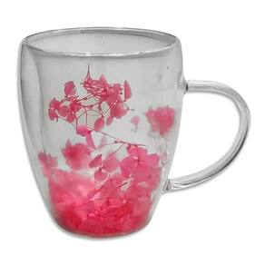 01 Caneca de Vidro Dupla Parede com Pétalas de Flores de 350ml