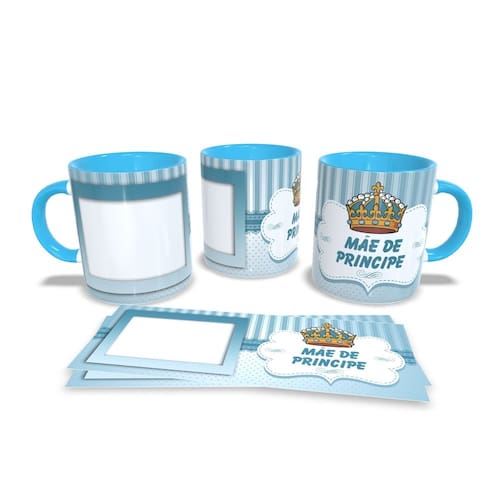 Caneca personalizada de porcelana de alto brilho, com interior e alça Azul com linda Estampa da Coleção dia das Mães.