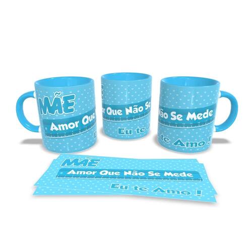 Caneca personalizada de porcelana de alto brilho, com interior e alça Azul com linda Estampa da Coleção dia das Mães.
