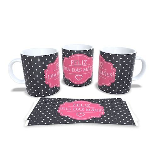 Caneca personalizada de porcelana de alto brilho, com interior e alça branca com linda Estampa da Coleção dia das Mães.