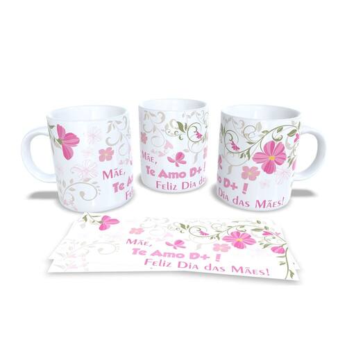 Caneca personalizada de porcelana de alto brilho, com interior e alça branca com linda Estampa da Coleção dia das Mães.