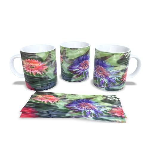 Caneca personalizada de porcelana de alto brilho, com interior e alça branca com linda Estampa da Coleção Flores.