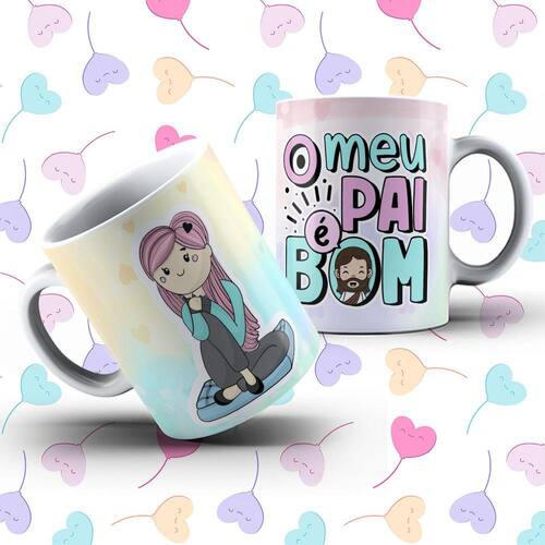 Caneca personalizada de porcelana de alto brilho, com interior e alça branca com linda Estampa Tema Evangelico.