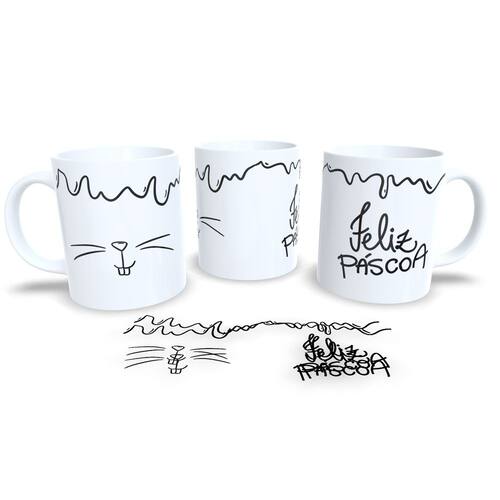 Caneca personalizada de porcelana de alto brilho, com alça e interior branca Coleção Páscoa.