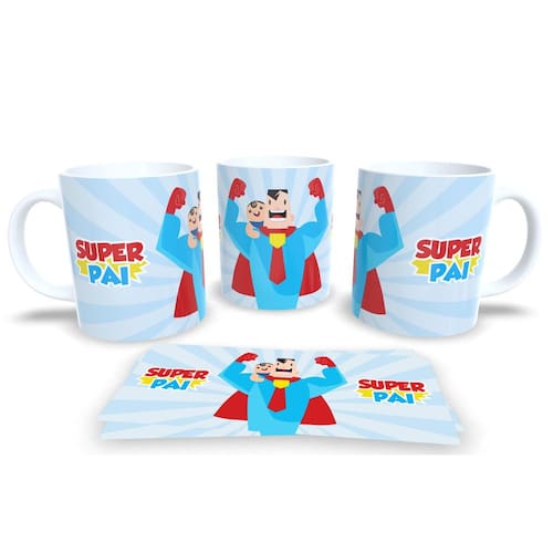 Caneca personalizada de porcelana de alto brilho, com interior e Alça branca Coleção dia dos Pais.