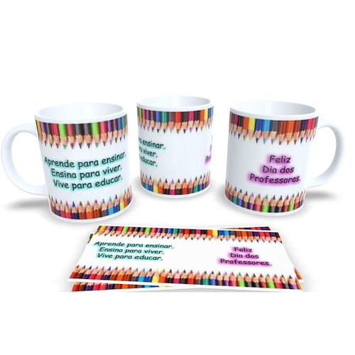 Caneca personalizada de porcelana de alto brilho, com interior e Alça branca Coleção dia dos Professores.