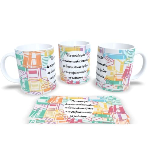 Caneca personalizada de porcelana de alto brilho, com interior e Alça branca Coleção dia dos Professores.