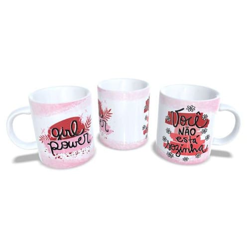 Caneca personalizada de porcelana de alto brilho, com interior e alça branca com linda Estampa do dia da Mulher.
