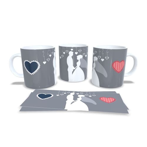 Caneca personalizada de porcelana de alto brilho, com interior e alça branca com linda Estampa da Coleção Dia dos Namorados.