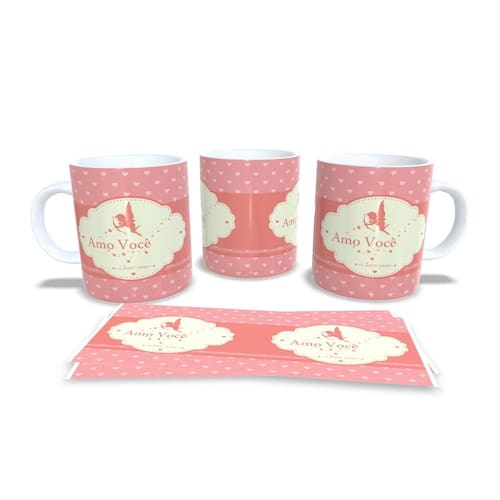 Caneca personalizada de porcelana de alto brilho, com interior e alça branca com linda Estampa da Coleção Dia dos Namorados.