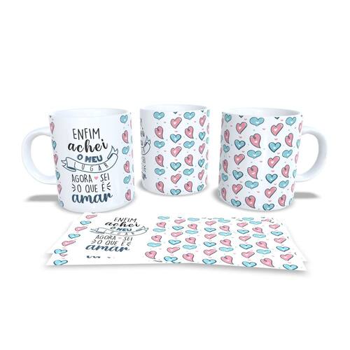 aneca personalizada de porcelana de alto brilho, com interior e alça branca com linda Estampa da Coleção Dia dos Namorados.