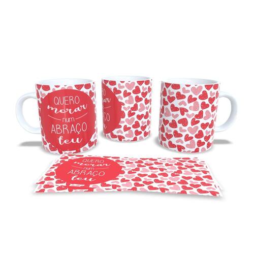 aneca personalizada de porcelana de alto brilho, com interior e alça branca com linda Estampa da Coleção Dia dos Namorados.