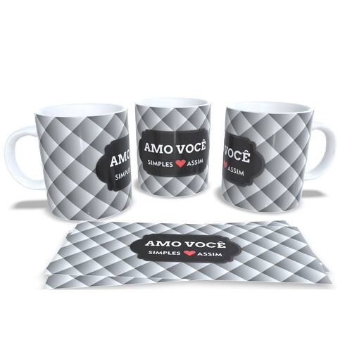 aneca personalizada de porcelana de alto brilho, com interior e alça branca com linda Estampa da Coleção Dia dos Namorados.