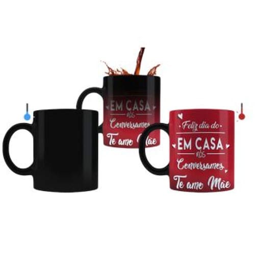 Caneca mágica de porcelana termosensível com interior branco, com estampa do dia das Mães.
