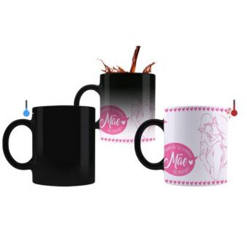 Caneca mágica de porcelana termosensível com interior branco, com estampa do dia das Mães.