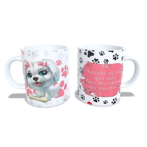 Caneca personalizada de porcelana de alto brilho, com interior e Alça branca Coleção Cães e Gatos.