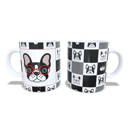 Caneca personalizada de porcelana de alto brilho, com interior e Alça branca Coleção Cães e Gatos.