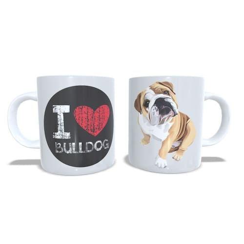 Caneca personalizada de porcelana de alto brilho, com interior e Alça branca Coleção Cães e Gatos.